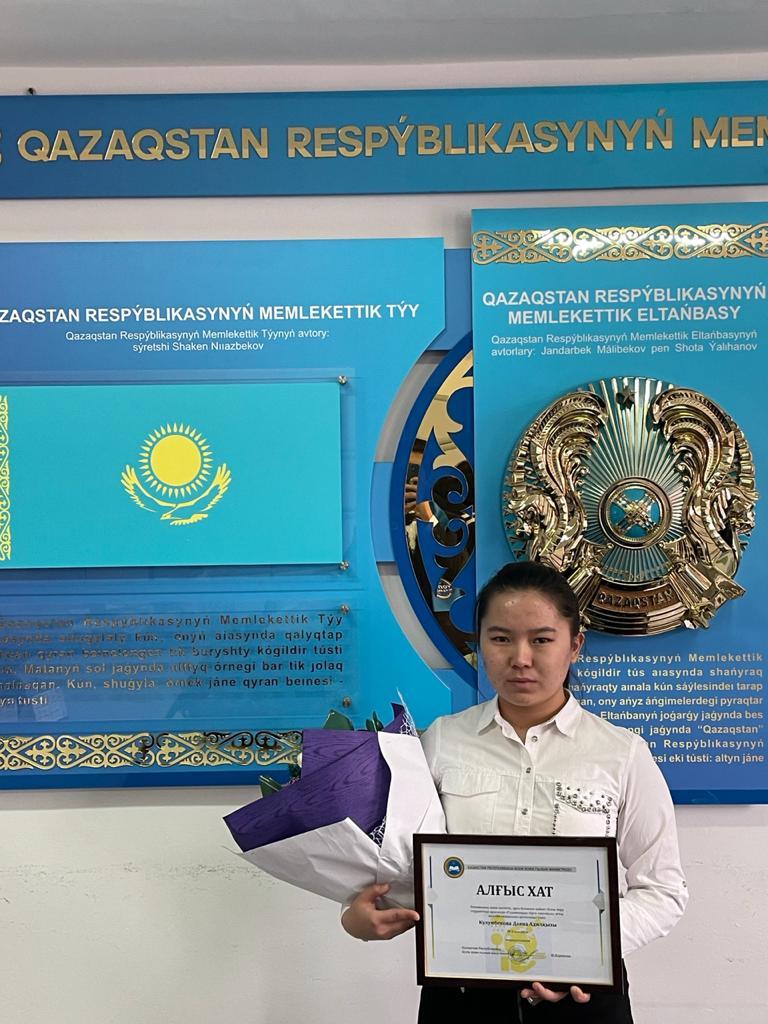 Техникалық және кәсіптік орта білімнен кейінгі білім беру студенттері арасында өткен “Ғаламшарды бірге сақтайық” онлайн акциясына қатысып, жоғары дәрежеден көрінген 6колледж 30-19 топ студенті Кулумбекова Даяна Адилқызы ҚР Білім және ғылым вице-министрі Ш. Каринованың арнайы Алғыс хатымен марапатталды.