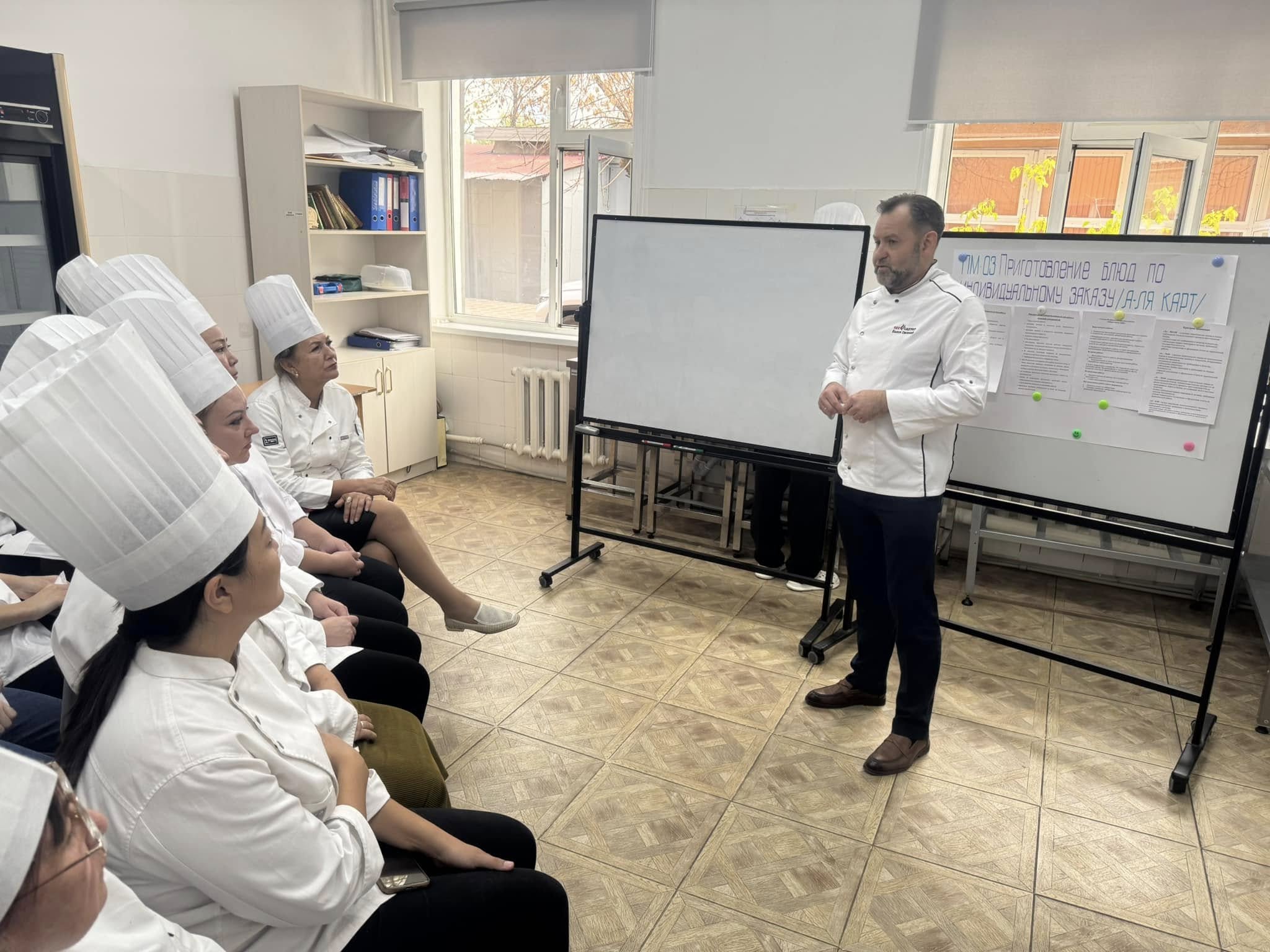 04.10.2024 года в ГККП «Колледж индустрии питания и сервиса» УО города Шымкент прошел семинар на тему: «Проектирование профессионального опыта: от теории к практике» с участием - Быкова Евгения Петровича, бренд-шефа РФ, участника и призёра международных конкурсов и выставок: Бронзовая медаль на чемпионате мира в Люксембурге в 2006 году (капитан региональной команды)