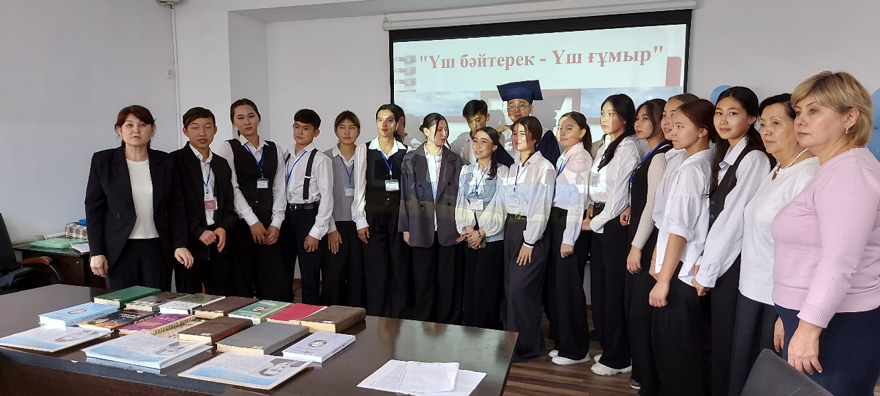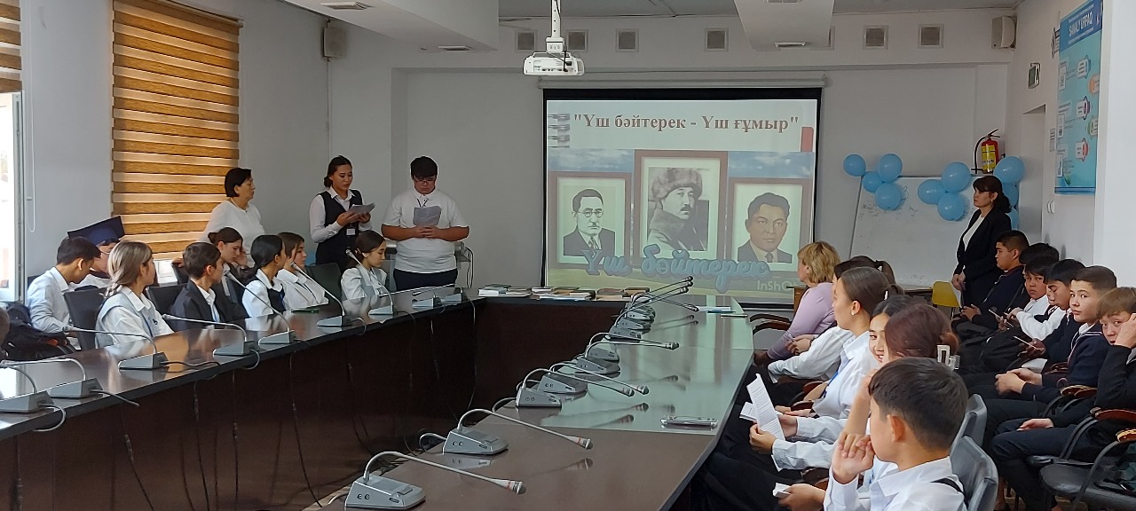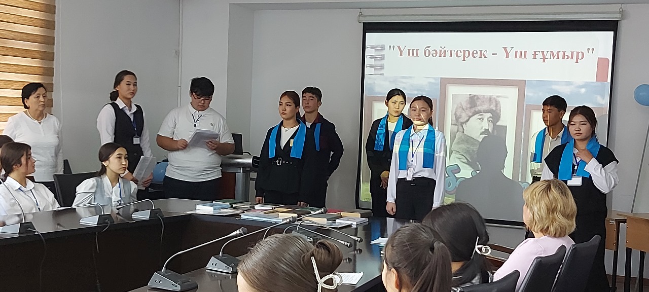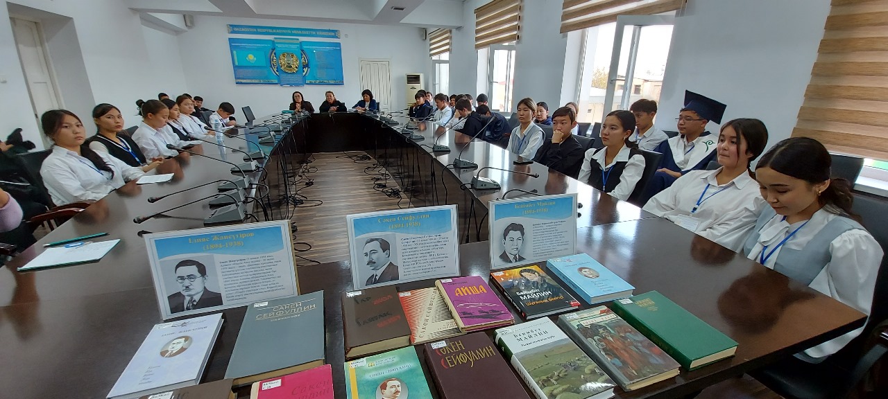 4 ноября 2024 года в ГККП «Колледже индустрии питания и сервиса», преподаватели казахского языка и литературы Каражанова К.Б. и Абдразакова А.У. провели мероприятие "Три Байтерек-три жизни" среди студентов первого курса, посвященное 130-летию творчеству С.Сейфулина, Б.Майлина и И.Жансугурова.