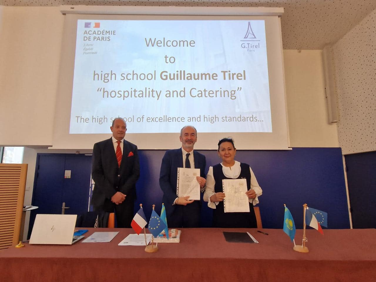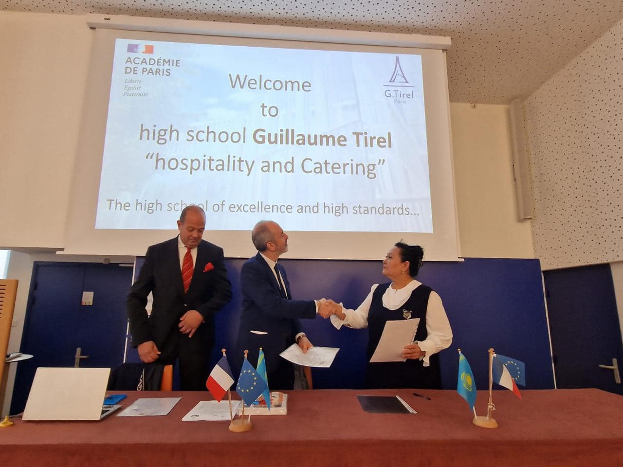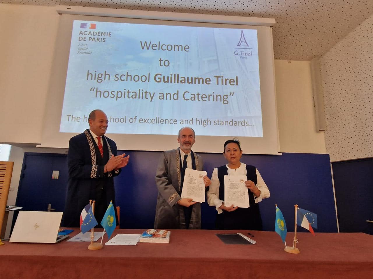 Ответным визитом стала поездка Шымкентской делегации для поддержания Меморандума о сотрудничестве с французскими коллегами Парижским Lycée - Paris.